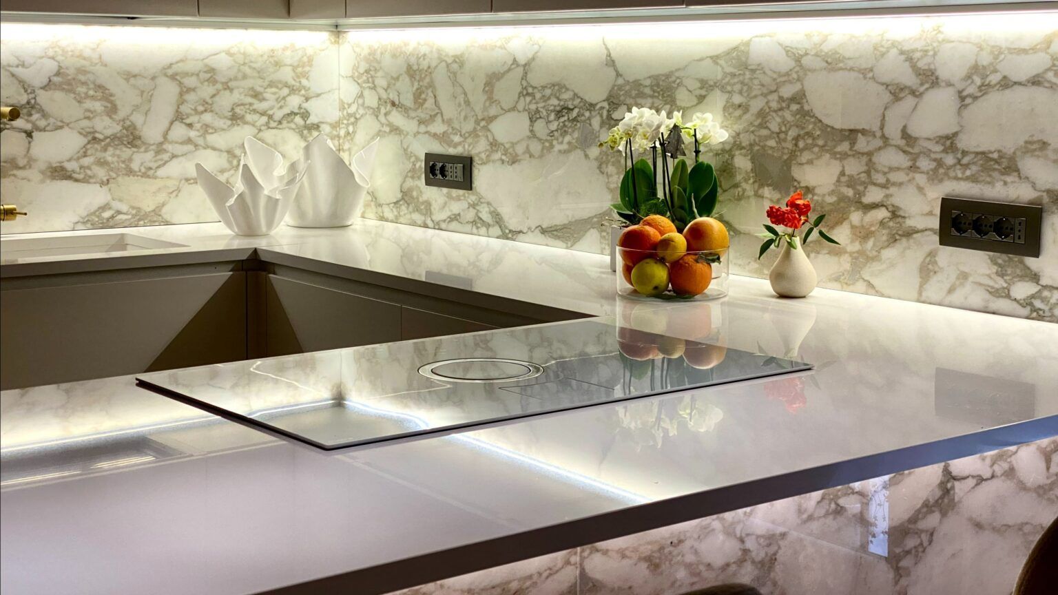 Kitchen Countertops, Marble Flooring, Stone Walls.